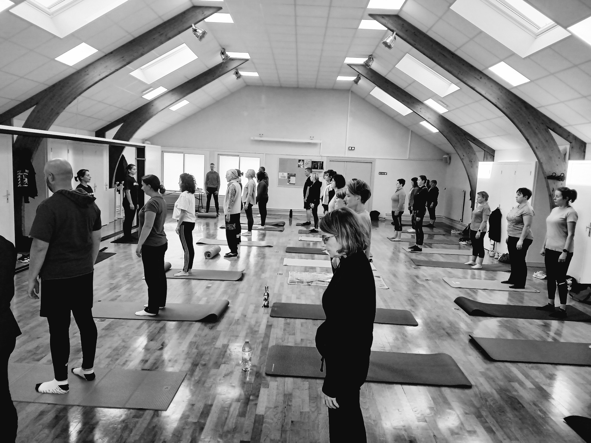 Le cours d'une heure, est un cours où chacun fait ce qu'il peut grâce à la mise en place de plusieurs niveaux de pratique et des mouvements adaptés pour chacun. Ici pas de recherche de performance mais uniquement la recherche du bienêtre et de la remise en forme à son rythme.